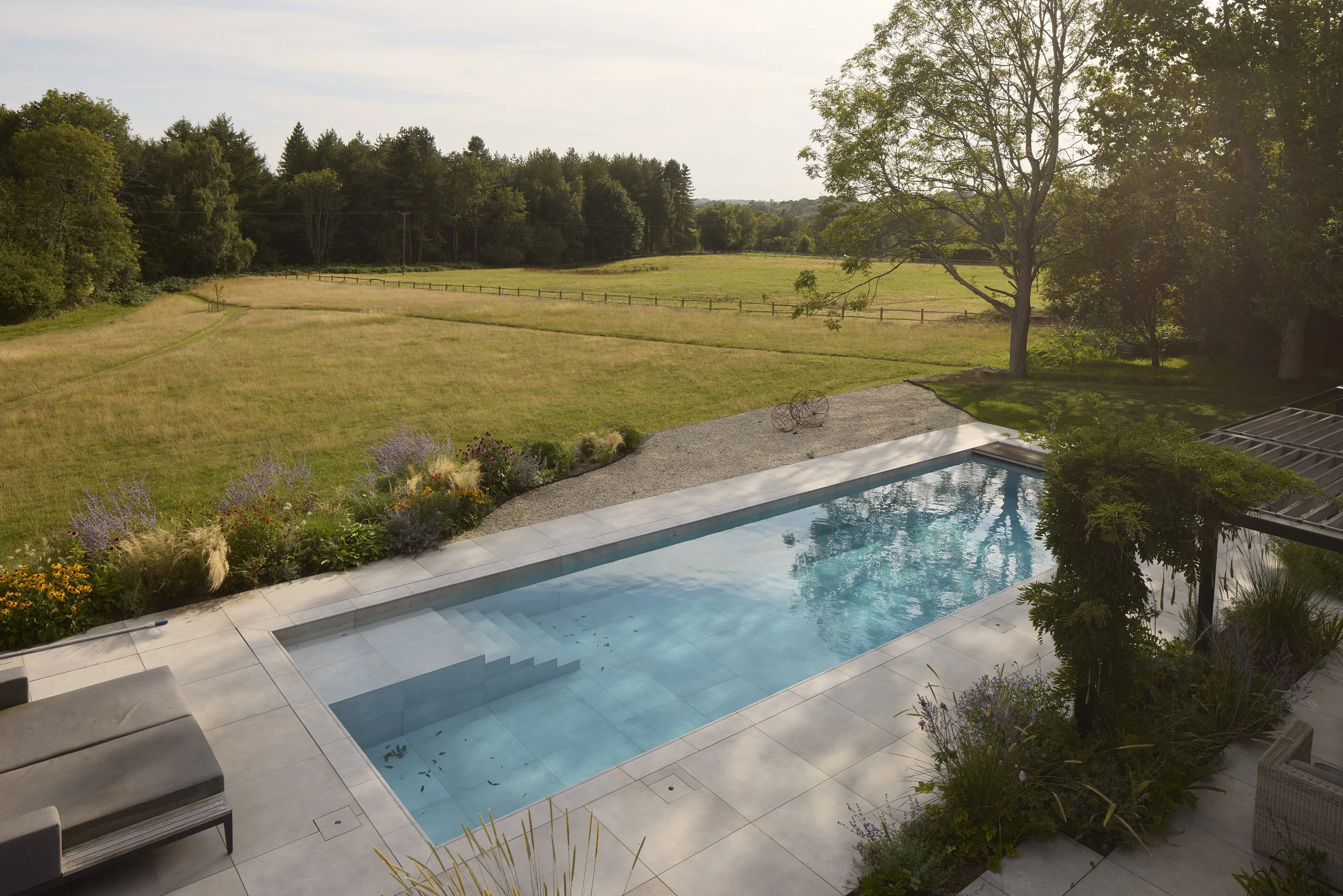 We installed a plunge pool with a current, an outside fire place, a sunken hot tub and various areas for dinning and lounging areas. We also added an outdoor kitchen.